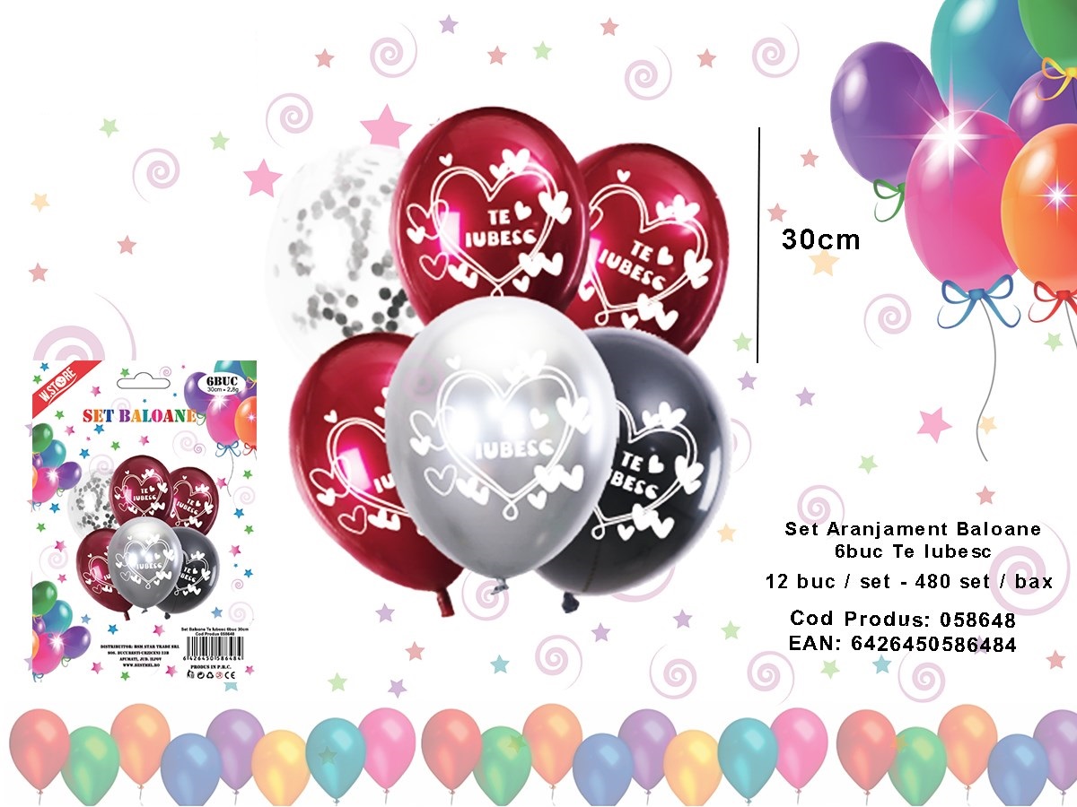 Set 6 bucati aranjament baloane Te Iubesc. Dimensiune: 30cm.