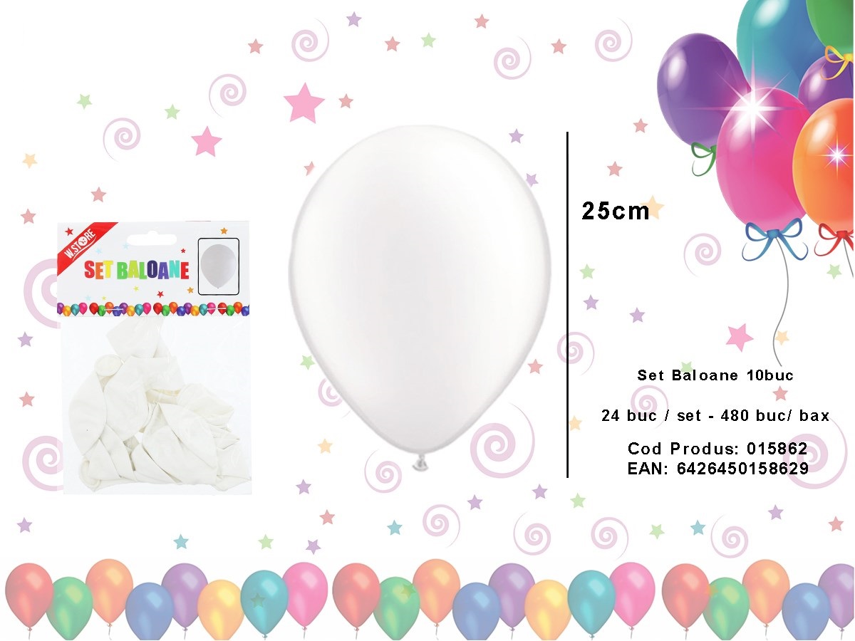 Set cu 10 bucati baloane, culoare alb. Dimensiune 25cm.