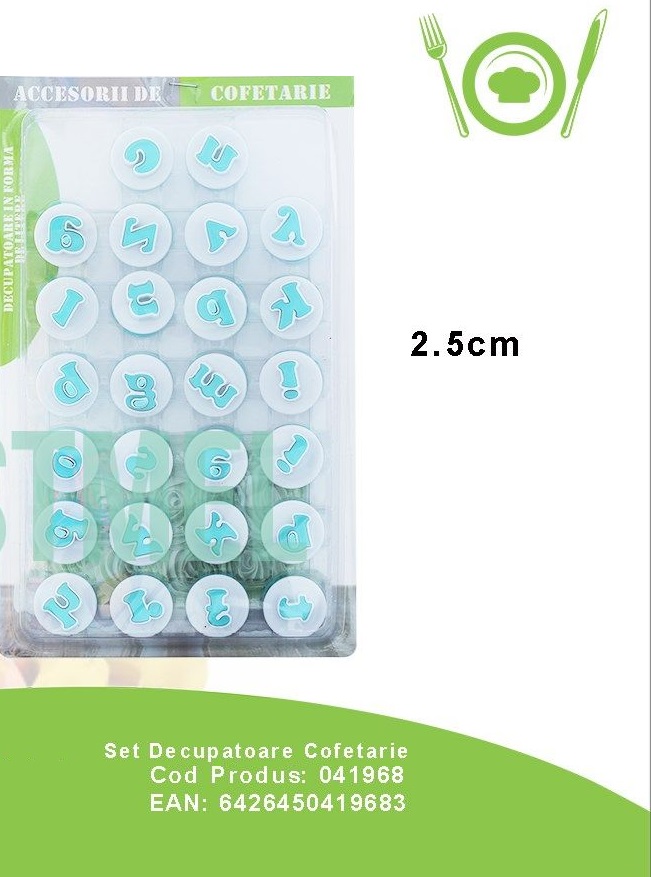 Set 26 bucati decupatoare cofetarie litere. Dimensiune 2.5cm.