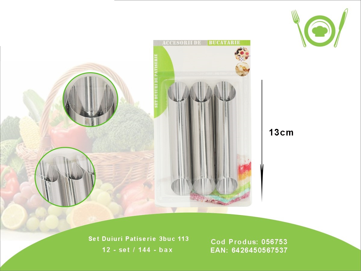 Set 3 bucati duiuri patiserie, din metal. Cantitate pe bax: 144 buc. Dimensiune: 9cm.